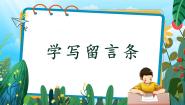 这是一份【新课标-核心素养】部编版语文二上 《第四单元写话: 留言条》课件+教案+音视频素材+课文朗读,文件包含二上四单元写话学写留言条pptx、学写留言条教案docx、音频1mp3、音频2mp3、绘本mp4等5份课件配套教学资源,其中PPT共13页, 欢迎下载使用。