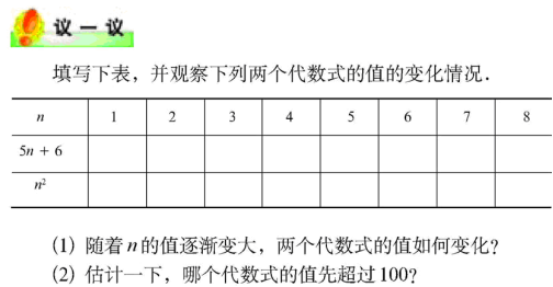 2.感受字母取值的变化与代数式的值的变化之间的联系,能利用代数式的值推断一些代数式所反映的规律