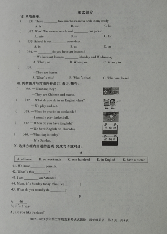 新疆阿勒泰地区2022-2023学年四年级下学期期末考试英语试题