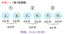 【学情预设】有些学生可能会选择1张1张地烙,需要18分钟,还有学生会发现先同时烙2张,再烙1张更省时间,只需要12分钟。