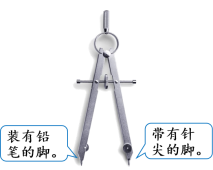 师:刚才有同学提到了圆规,确实,画圆要用到专门的工具——圆规。