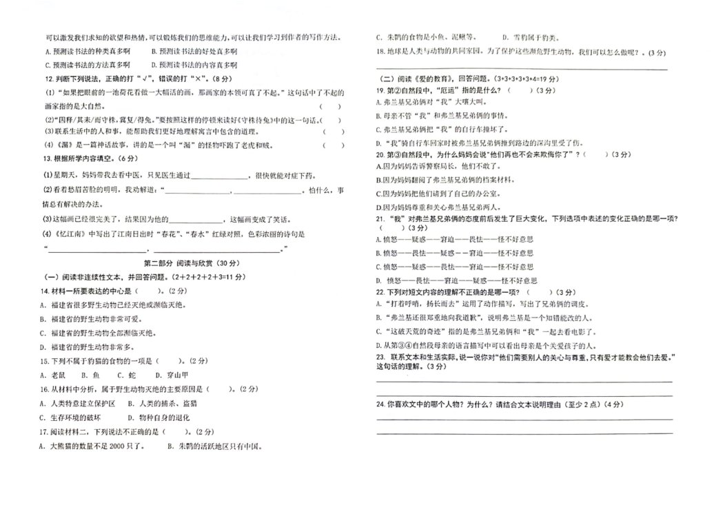 福建省厦门市思明区2023-2024学年四年级上学期期末语文试卷: 这是一份福建省厦门市思明区2023-2024学年四年级上学期期末语文试卷,共4页。