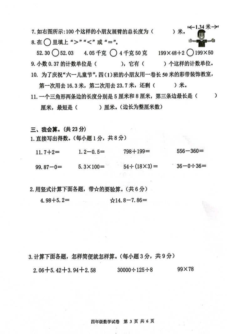 广东省广州市花都区2022-2023学年四年级下学期数学期末调研测试卷