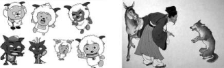 (1)关于狼的故事有很多,请根据图片提示写出相应的故事或作品名称。