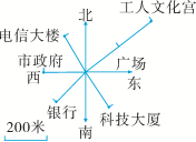 (1)市政府在 正西 方向上,距离是 200 米。 (2)电信大楼在 北 偏 西 方向上,距离是 200 米。 (3)工人文化宫在 东 偏 北 的方向上,距离是 400 米。 (4)银行在 西 偏 南 的方向上,距离是 200 米。 | ||