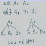 26.小丽有2件上衣,3条裤子,如果一件上衣和一条裤子穿在一起看作一种搭配,最多可以有多少种搭配方法?