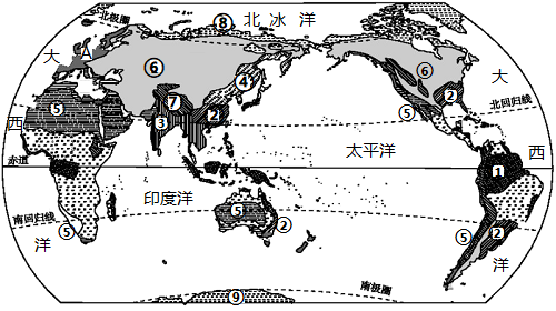 (4)另外,还有一些极端的气候类型,如,⑦____、⑧____、⑨____。