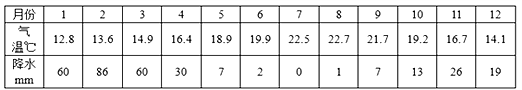 29.(本题18分)读美国洛杉矶月平均气温和降水量表,完成下列各题。