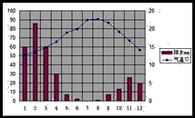 (1)绘制气温年变化曲线和逐月降水量柱状图。