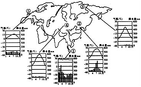 (3)图中⑤是____气候,分布在____,该气候分布最广大的地区是____;⑥气候类型是____,气候特点是____。