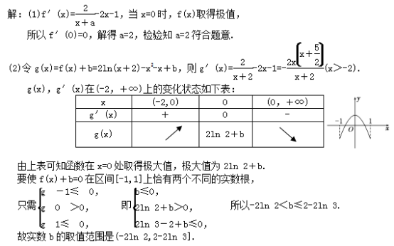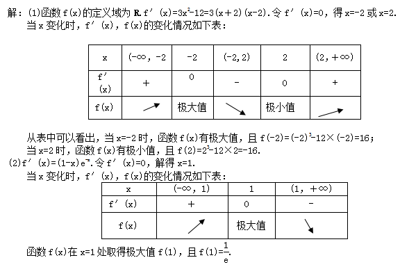,若当x∈[-2,2]时,不等式f(x)>m恒成立,则实数m的取值范围是________. 12.已知f(x)=x3+ax2+(a+6)x+1有极大值和极小值,则a的取值范围为________________. 三 、解答题13.求下列函数的极值.(1)f(x)=x3-12x;(2)f(x)=xe-x. 14.已知f(x)=ax5-bx3+c在x=±1处的极大值为4,极小值为0,试确定a,b,c的值. 15.已知f(x)=2ln(x+a)-x2-x在x=0处取得极值.(1)求实数a的值.(2)若关于x的方程f(x)+b=0的区间[-1,1]上恰有两个不同的实数根,求实数b的取值范围. 16.已知函数