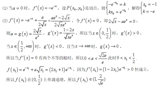 .(1)若a=0,直线y=kx是曲线y=f(x)的切线,求实数k的值;(2)若x1,x2是函数f(x)的两个极值点,且x1<x2,求f(x1)的取值范围.