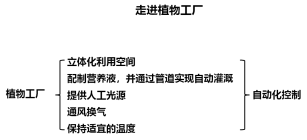 重点 | 知道植物工厂里的一些技术手段,如空间利用、光照、营养供给、管道灌溉、通风换气、保温、自动化控制等,并知道这些技术的主要特点。 | ||||||