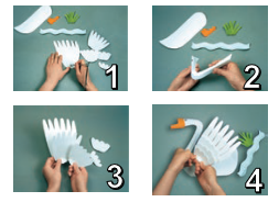 鹰:先将一张较硬的彩色纸对折,按实线剪切口,按虚线折好,加一底托,要凸显鹰欲展翅高飞的气势。 天鹅制作:先将天鹅的各部分结构分别剪出,然后用圆规尖划痕折曲形成立体形态,再将各部分按层次粘贴。翅膀是主要部分,可分三层或至五层加强其立体感。构图上可自己创意,增加环境,如月亮、柳条、水纹等,使画面更有意趣。