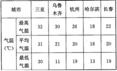 (3)分析表中乌鲁木齐与长春的有关数据可知:两个城市之间存在差异的气象要素是_______,产生这种差异的主要原因是_______。