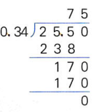 (1)25.5÷0.34=75