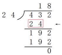 4.一部儿童动画片总时长432分钟,每24分钟编成一集,可以编成多少集?小亮用竖式计算出了结果。整式中方框里的数表示( )。