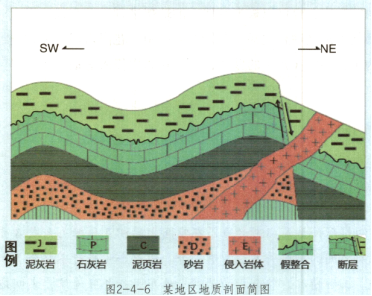 图2-4-6为某地区地质剖面简图,读图完成以下任务。