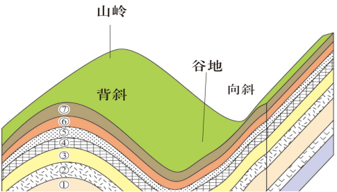 提示:背斜顶部因受张力,易被侵蚀。