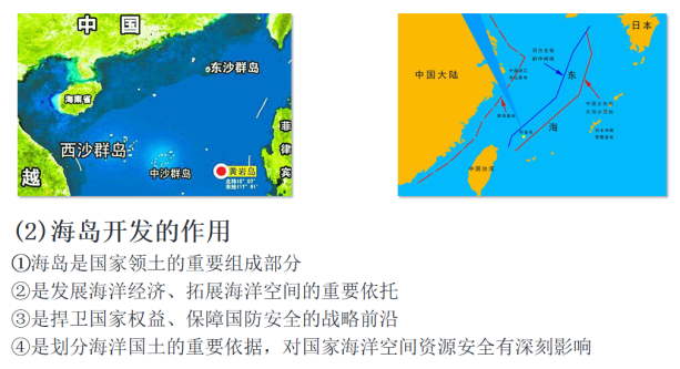 2.结合图文资料,探讨我国耕海牧渔、海洋交通线路建设、填海造地、海岛开发等与国家安全的关系。(综合思维、区域认知、地理实践力)