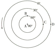 解析:地球自转的角速度除两极点为零外,其他地方均相同,大约为每小时15°A为极点角速度最小,B、C、D角速度相等,AD选项错误;地球自转线速度除两极点为零外,随纬度的增大而减小,故线速度A<B<C<D,B选项正确,C选项错误。所以选B。