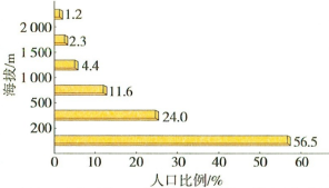 读“世界不同海拔人口分布图”,完成下面小题。
