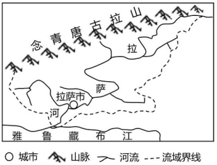 2021年,西藏自治区常住人口为364.81万人,是我国人口密度最小的省级行政区之一,其中拉萨市人口为86.79万人,是西藏人口相对稠密的地区。拉萨河是拉萨市的母亲河,发源于念青唐古拉山南麓,向西南流经拉萨市,至曲水县汇入雅鲁藏布江。上游峡谷林立,下游河谷开阔,是西藏的主要耕作区。结合拉萨河流域示意图(下图),完成下面小题。