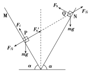 D.球对AC边的压力先减小后增大解析:对正三角形内部的小球受力分析,如图所示,由几何关系可知=,β不变,θ从0°变到60°,所以FNAC一直增大,由牛顿第三定律知球对AC边的压力一直增大,A正确,B、C、D错误。答案:A8.(2021·海南卷)如图,V形对接的绝缘斜面M、N固定在水平面上,两斜面与水平面夹角均为α=60°,其中斜面N光滑。两个质量相同的带电小滑块P、Q分别静止在M、N上,P、Q连线垂直于斜面M,已知最大静摩擦力等于滑动摩擦力,则P与M间的动摩擦因数至少为( )