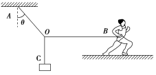 【B级——能力提升】10.如图所示,某健身爱好者利用如下装置锻炼自己的臂力和腿部力量,在O点悬挂重物C,手拉着轻绳且始终保持绳索平行于粗糙的水平地面。当他缓慢地向右移动时,下列说法正确的有( )