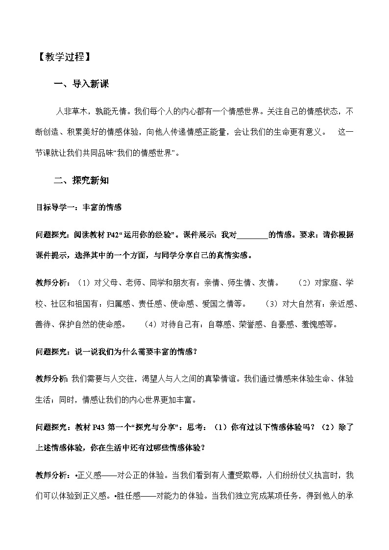 初中政治 (道德与法治)人教部编版七年级下册我们的情感世界教案设计