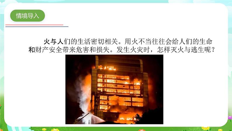 火与人们的生活密切相关。用火不当往往会给人们的生命和财产安全带来危害和损失。发生火灾时,怎样灭火与逃生呢?