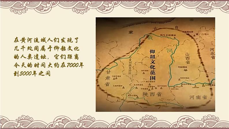 在黄河流域人们发现了几千处同属于仰韶文化的人类遗址,它们距离今天的时间大约在7000年到5000年之间